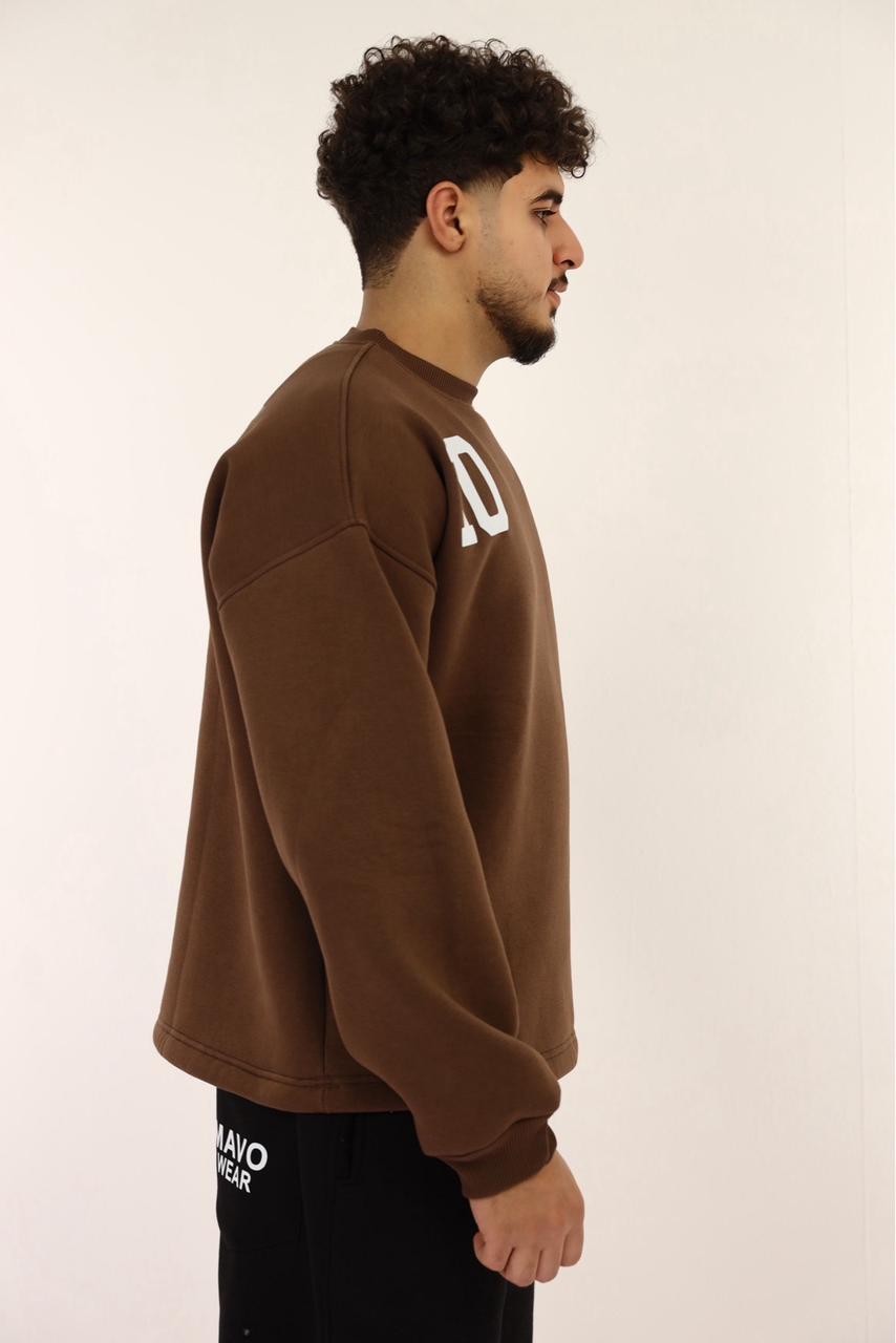 سويت شيرت مطبوع باللون البني بتصميم عصري وكاجوال، مصنوع من خامة قطن مخلوط تقيلة توفر دفء وراحة طوال اليوم. الطباعة عالية الجودة تضيف لمسة مميزة وتدوم مع الاستخدام والغسيل.
